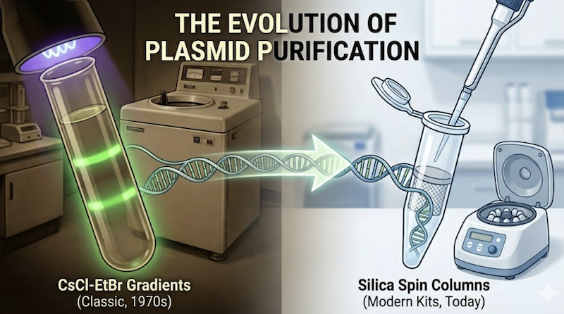 The Evolution of Plasmid Purification — From CsCl Density Gradients to Silica Spin Columns